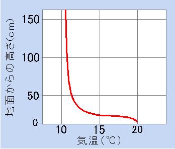 どうですか?地面のちかくは,目のたかさよりも,ずっとあたたかいでしょう。