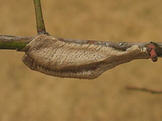 虫の冬越しと言えば,卵や「さなぎ」かな?直翅目(ちょくしもく)……コオロギやバッタ,カマキリのなかまは,卵で冬を越すものが多く,卵をうむ場所も,土の中や草の茎の中など,寒くなりにくい場所が多いのですが,カマキリの仲間は,茎などに卵塊(らんかい)をうみます。卵塊には空気がたくさん入っていて,断熱材のようになっています。