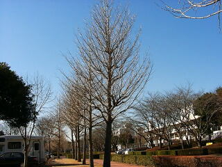 ケヤキ。高さもかなりありますが,横にもかなり枝が伸びています。