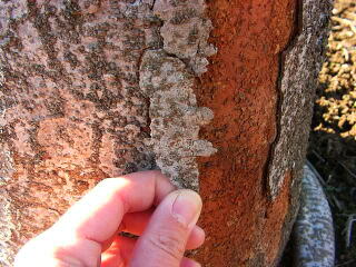 だから,ケヤキの木の根元には,樹皮のかけらがたくさん落ちています。