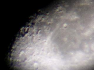 これが得られた画像です。320×240ピクセルにトリミングしているので,2000mm望遠相当のフレーミングになっています。画像処理の都合でバックの色が少々おかしいのですが,月面の模様やクレーターもしっかり捉えています。これなら月食の撮影ぐらい,チョイチョイっとこなせるかな。