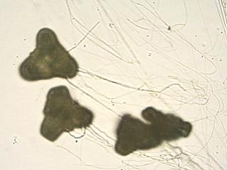 ツツジに比べると,花粉が大きく,粘着糸も長いようです。花粉を指につけてみると,かなりザラザラした感じです。花粉の形がテトラポッドのように見えますが,この形には何か意味があるのでしょうか?