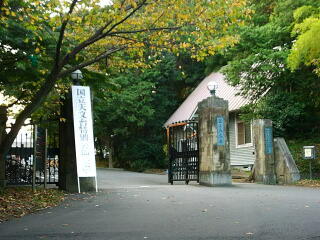 天文台の入口。調布からバスで15分ほど。普段は静かな緑濃いキャンパスも,この日はにぎやか。