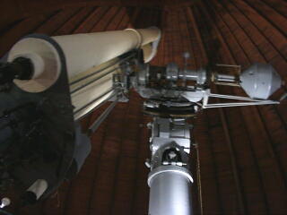 今は使われていない,20cm屈折望遠鏡。「運転時計」による駆動,と言うのが歴史を感じさせます。100年位前の,カール・ツァイスの望遠鏡です。