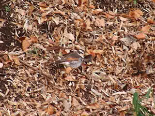 これはツグミ。こちらも落ち葉の下の虫探し中。ツグミも春になると北へ渡ってゆきます。