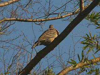 斜面林の木の上にはキジバトが日向ぼっこ。キジバトが鳴くと,なんとなく,のんびりした空気が流れます。