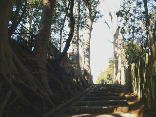 手賀沼の斜面林には,階段も多い。