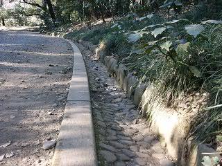 以前は,下の写真のような,森の環境に溶け込む,石造りの側溝があったのですが……。