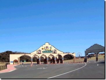 【入園ゲート】 ここは車のまま入園します。広い園内を自分の車で移動できるので、小さな子供がいる方にはラッキーです。なにしろ東京ドームの27倍の広さがあるので歩くのはちょっとキツイと思います。 元ゴルフ場とあって芝生の上で昼寝するのもよし、スポーツするのもよし。ただ広すぎて平日だとちょっと淋しいかも.... |