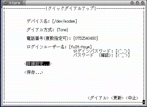$ ppxp asahinet -----プロバイダーアクセスポイントのファイルで起動