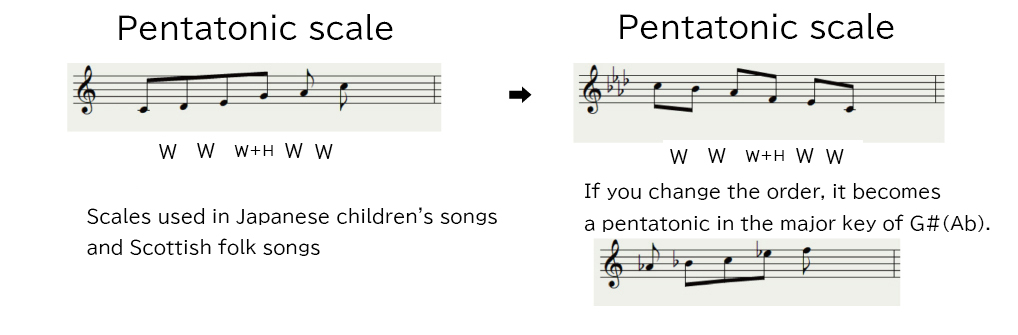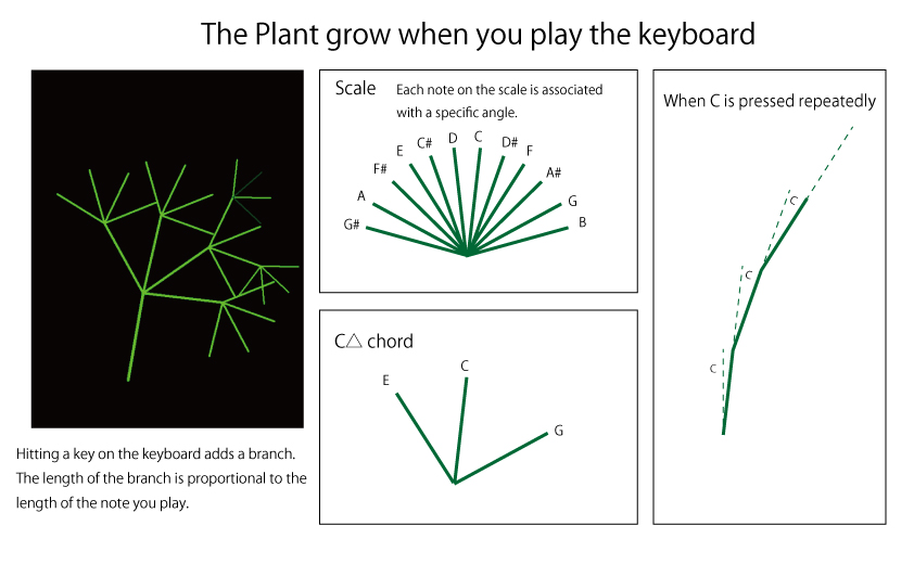 Each note in the scale (A, B, C, E, E, F, G and sharp and flat