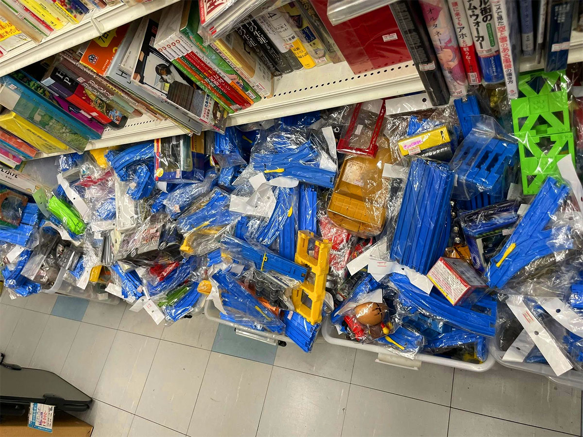 大量の線路とモーター車が必要なのでリサイクルショップで調達。宇治(城陽?)のCUBEという店で線路が、伏見のブックオフでモーター車がいっぱい売られているのを見つけたので大量に購入しました。 |