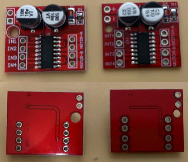 モータードライバ、右のが売り切れてたんで(販売終了?)左のを買ったんですが、IN1〜IN 4