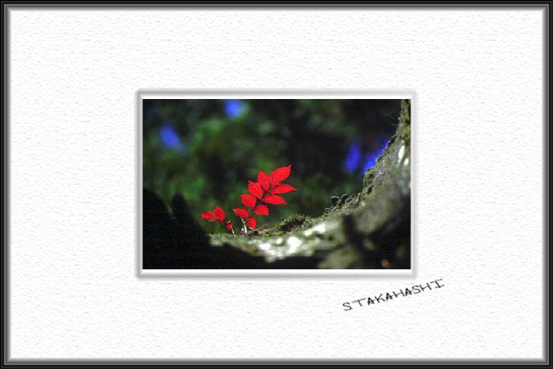 そこに真っ赤に紅葉した枝が