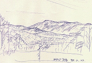 北東斜面広場から望む明ヶ田尾山 1998.2.22.