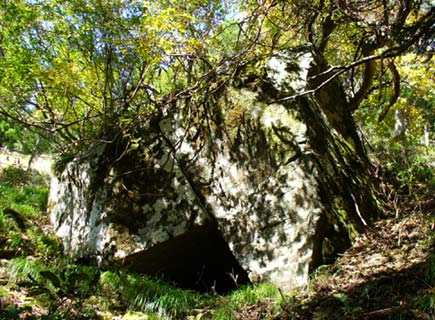 思ったら、その下に三角の穴が開いた岩があった。三室の所以との説もある。更に植林の中を巻きつつ登る。