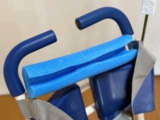 ハンドル部分にスポンジを取り付けて、背もたれを延長。