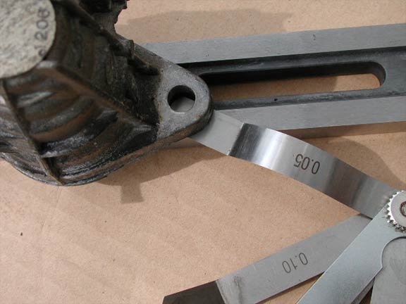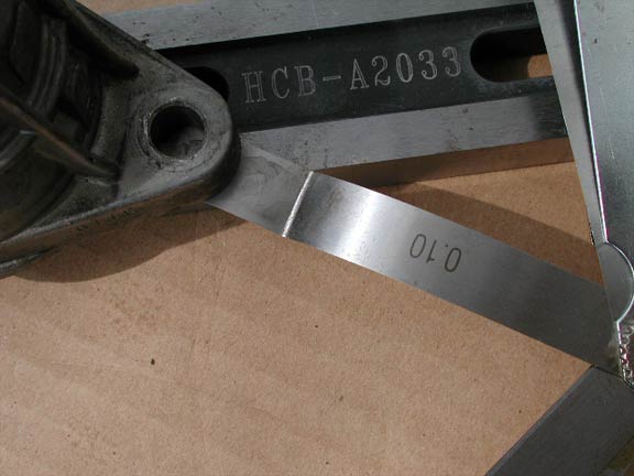 今回、対策品と未対策品で歪みの検証を行い、過去の結論が正しかったのかを検証しておく。検証の仕方はストレートエッジ上にマスターシリンダーを置き、シックネスゲージでマスターバックとの接触面の歪みを計測するというもの。