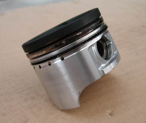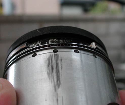 7.エンジンを再度おろして分解して見たら、1つのピストンが上の写真のような状態になっていた。