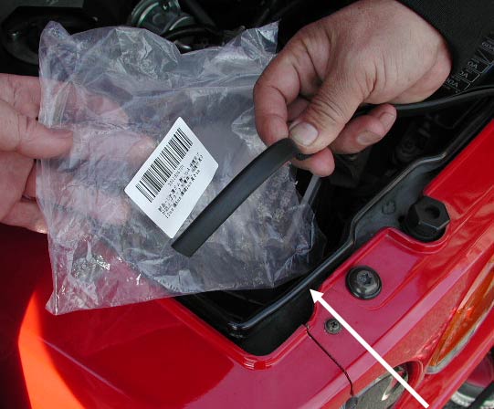 ネタを紹介してもらった。エンジンフード周辺にあるゴムモール、P100-56-915及び916の代替品である。この部品は両面テープのようなもので貼り付けられているのだが、外れやすい。特に右側(ステーのある側)のP100-56-916がなくなりやすい。いつの間にか消えていたという人も多いのでは? 私もその一人。購入場所はアマゾンとのこと。