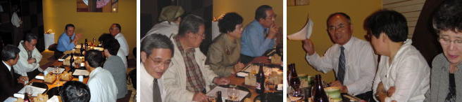 ■昨年7月19日、岡山で開催されたコスモス会(岡山大学弁論部同窓会)に参加した。席上、次回のコスモス会は大阪在住者が幹事を担当することが確認された。(コスモス会幹事は、岡山、大阪、東京の各グループの持ち回りということだ)今年の1月に、大阪在住の副島さんや京都在住の竹内さんとの年賀メールのやりとりの中で、「一度、関西在住者だけのコスモス会を開催してはどうか」ということが話題になった。次回の大坂コスモス会開催に向けての関西在住者の顔合わせの意味もある。 その後のメールのやりとりで、コスモス会関西地区懇親会の打合せのための世話人会を開催することになった。 ■2月12日、大坂梅田の阪急百貨店本店・ダイニングステージ8階「京風懐石料理・明月記」に金光さん、副島さん、竹内さん、島元さん、日高の5人が顔を揃えた。 大学時代の思い出話に花を咲かせながら、久方ぶりの痛飲だった。それでも何とか関西地区懇親会の開催日程だけは確認した。会場手配と在住者への案内状送付は私の役回りとなった。 副島さん作成のコスモス会名簿によれば、関西2府4県のOB在住者は23名ということだ。消息不明が明らかな2名の方と世話人5名を除き、16名の方に案内状を郵送したところ、5名の方から出席の返信を頂いた。 ■5月13日、いよいよ関西地区懇親会。会場は、世話人会と同じ「明月記」である。午後7時前にに到着。店先の待合席に副島さんと島元さんの顔があった。予約した会場小部屋の都合で、夜の第1部終了後の7時30分が開宴予定だったが、第1部の予約は入っていなかったようで、すぐに席に案内された。 しばらくすると、見知らぬ年配の男性が案内されてきた。初対面の先輩に違いない。頂いた名刺には「弁護士・難藤務」とある。その後、岡山コスモス会でお目にかかった小野さん、在学中の先輩でもある三宅さん、竹内さん、初めてお目にかかる大池さんと相次いでご登場。定刻間際に金光さんが、少し遅れて1年先輩の柚木さんが参加。予定の10名全員の顔ぶれが揃った。 |