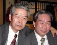 ■ローカルニュース 例会全体の流れとは別に、三つに分かれた各テーブルでは 様々な懇親・交流が繰り広げ■向いの席にはNTTグループの三浦さんと谷口さんが陣取り、お二人の絶妙の仲良しコンビぶりを垣間見た。要望に応じて撮らせていただいたのが左の画像である。二人の中年男性のボケとツッコミの余韻が漂っている。美しくて哀しい、そして不気味な雰囲気がたまりません。 ■左隣の川島さんと上林さん(イラク戦争で大変なエジプト航空勤務)の席に、京都から来訪の福井さんが合流。3人の共通項は大の歌舞伎ファンということ。さくら会にもご縁のある歌舞伎俳優・澤村藤十郎さんのお見舞い等の話題で大いに盛り上がっている様子。おもわず女性お二人のツーショット(右画像)を撮らせていただいた。 |