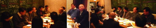 ねた総会が開催された。3カ月ぶりの今年7回目の例会である。この開催状況に現在のさくら会の苦悩が凝縮されている。■12月10日に引き続いて総会前に会場近くのファーストフード店で臨時の幹事会が開催された。運営の在り方についての最終の打合せだった。岡さんが確認内容をノートパソコンから近くのセブンイレブンのプリンターにデータで飛ばしプリントしてしまう。岡さんのITを駆使したビジネス・スキルに一同脱帽した。 ■6時30分過ぎに総会会場「イタリア炭焼酒場ペシェドーロ」に着いた。二階の大部屋には参加数の宴席が用意されていた。しばらくするとメンバーたちがさみだれ的に顔を揃える。7時から2時間のフリードリンク制である。7時過ぎに生ビールで乾杯し総会がスタートした。冒頭、3月に逝去された会の草創期からのメンバーである府録さんを偲んで黙祷する。 |