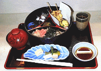 蛸づくし(¥2000) 蛸めし膳に蛸と野菜の天ぷらに蛸の御刺し身がついてくる。 |