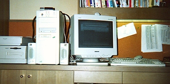 従来はMac派で、あまりWindowsは使っていませんでしたが、会社に入り、Windowsマシンを所有する必要性も高まったので、よし、どうせなら自作してしまえ、と昨年10月に秋葉原で部品を買い集め、AT互換機を自作することにしました。でも欲張りな私は、せかっく作るのにWindowsマシンだけにしておくのはもったいないと思い、フリーのUNIXもインストールすることにしました。というわけで、現在、我が部屋には、Mac(漢字Talk7.5.5)、Windows95、UNIX(FreeBSD2.2.1)の3大OSが共存しています。