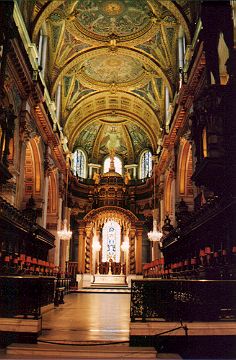 セントポール大聖堂の中。今は離婚した、チャールズ皇太子とダイアナ妃の結婚式が行われた。豪華な造りの中にも、落ち着いた雰囲気が漂っていた。 |