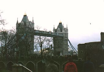 タワーブリッジ。テムズ川にかかる数多くの橋の中でも、最も有名な橋。 |