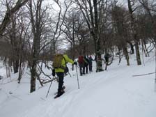 除雪終了点にて 沢沿いの下り