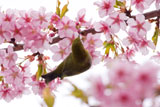 これらの写真は京急三浦海岸駅前広場の河津桜に蜜を吸いに来ているヒヨドリとメジロです。