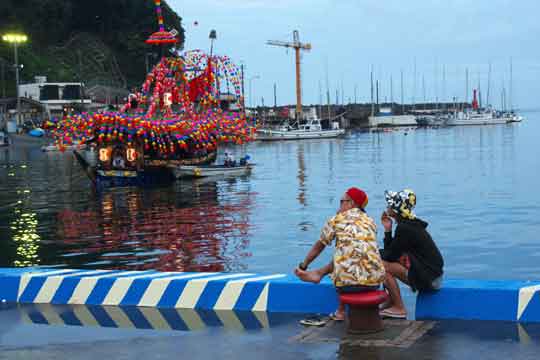 祭りを見ながら夕涼みするカップル。フィナーレまで一寸時間があります。