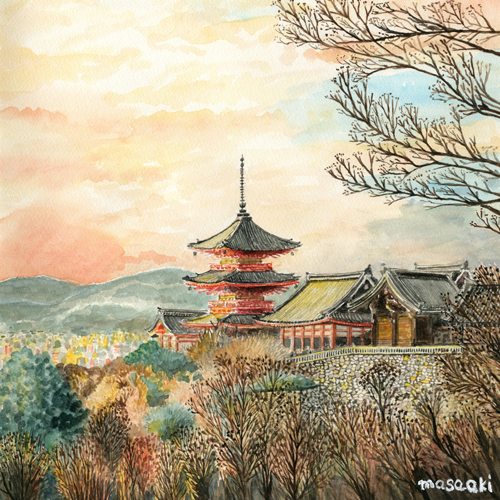 清水寺三重塔の夕日 2026/01