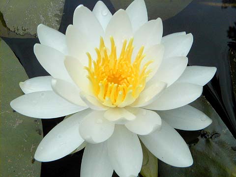 ◆ 白スイレン ◆![]() (2002/05/31 撮影 at せせらぎ公園) スイレン という花は、 神々しい美しさを放っているように感じる。 この汚れの無さ。 暖かく光る花の中心から、何か高貴なものが登場して来そう。 濁った水の中からつぼみが顔を出し、眩しく白い花が開くと、 池は全く違った景色に変わってしまう。 今年は5月中旬からポツポツと咲き始め、5月末には見頃となった。 ![]() (2002/06/07 撮影 at せせらぎ公園) 池の岸近くに白いスイレンが、池中央部には赤いスイレンが咲いている。 30℃ を超える暑さになると、朝夕だけ花が開き、日中は花が閉じている。 このスイレンの葉陰に、カメや、 ちびカメや、 ヘビや、 変な魚や、 謎の生物がいたりすることも。 |