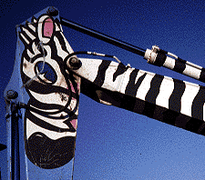 以前、働くキリン を見かけたことが あったけど、今度は「働くシマウマ」を見つけました。 場所は逗子・湘南国際村の建設現場。向こうには海と富士山が一望できます。 良く見ると、細いパイプまで白黒模様が描いてあって、 こだわりを感じさせます。 キリン、シマウマとくると、あとは「馬」とか「ラクダ」とかでしょうか。 見かけた方は御一報下さい。