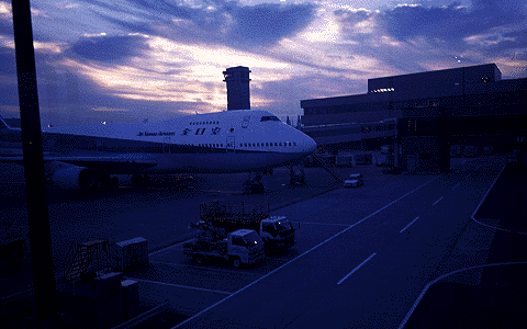 空も白んできて朝だ。日本だ。地上の気温は 4 度だって。 ひゃー寒い国だ。ゆっくり飛行機は着陸する 6:20。ドアの外は ほんとに肌寒いや。入国審査をさっさと済ませて外に出る。 あ〜あ、帰ってきちまったよ。