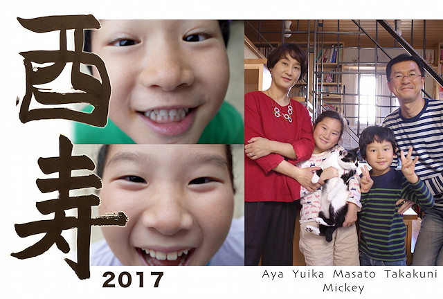 「酉」の字は息子、「寿」の字は娘が書きました。上手いね!