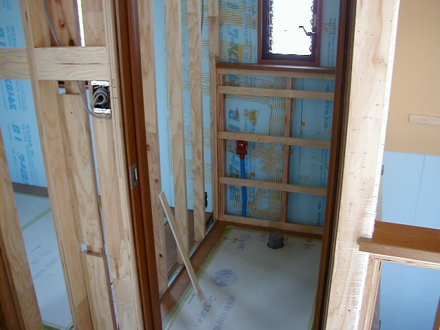 2階へ上がった階段横にあるトイレを撮影。写真右側が階段です。