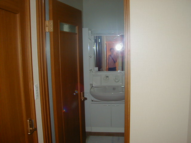 その横のお風呂の脱衣所を撮影。よく見ると、管理人佳子はVサインをしています。