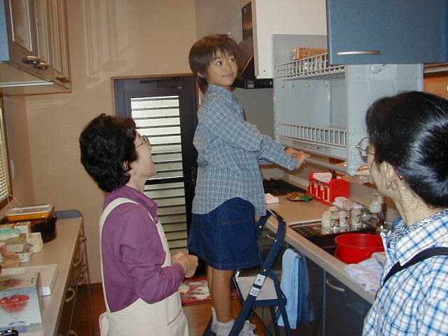 台所を仕切ってる真里。