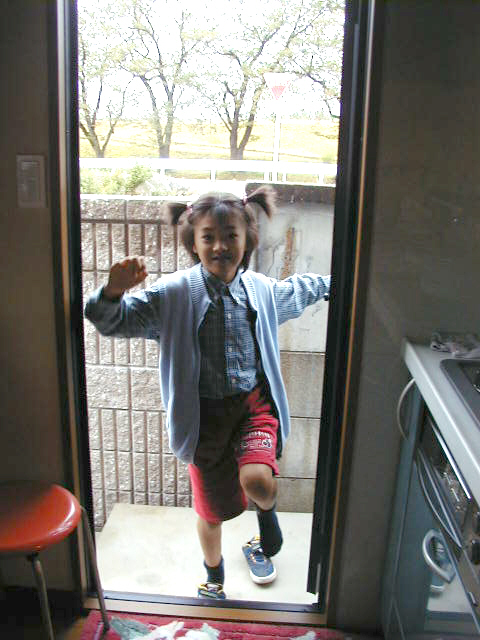 お勝手から出入りする真里。