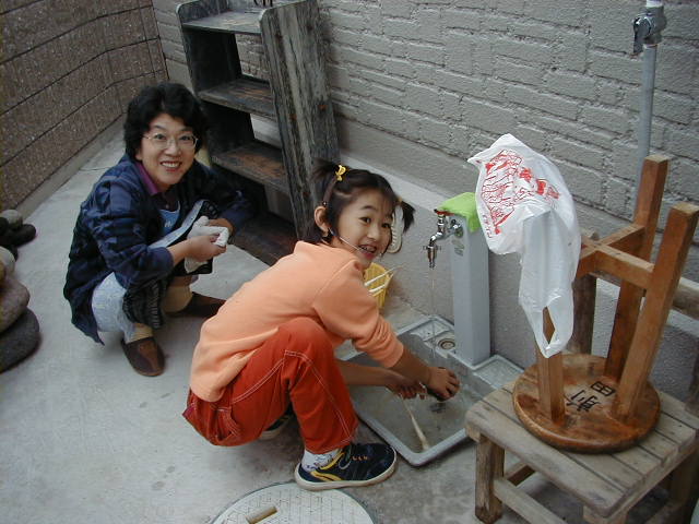かわいい洗い場でお手伝い。