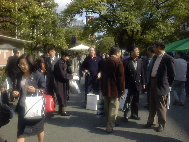 キャンパスはOBでにぎわっています。