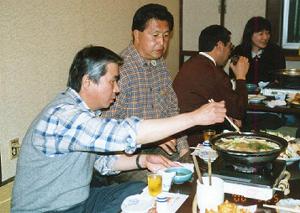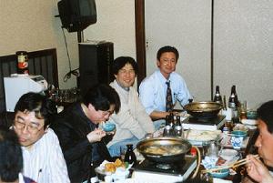 同好会OB会長の原氏は母校戸畑高校が甲子園出場ということで開会式を観に来る事になり 突然のスケヂュールにもかかわらず16名の朋友が難波の千日前「8番」に集合しました。 行方のわからなかった高田守氏もみんなとは約20年ぶりの再会に感動していました。 また、原氏と同じ会社のミノルタの山川氏は特別ゲストですが違和感なく楽しんでいました。