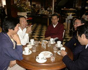 ホテルの前のおじさん軍団 オハヨウッス やっぱりイノダはいいのだ。