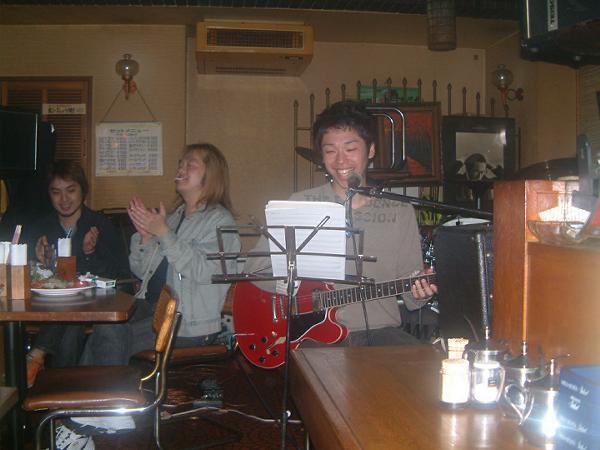 2003年10月17日(日) 橋の下ライブ 左からから欽也(ベース)、松川(ドラム)、山崎(ギター) 後藤、原、中尾、服部、真川、成瀬 原田、森田、後藤、原 秋場 祥太郎(ギター) かすみ(ヴォーカル) 成瀬氏の弾き語りはすばらしい。次回は皆も見に来る価値あり。 原田、後藤、真川、森田 ちらりと見えるのは高田、そして谷口、写真撮影は大久保 戻る