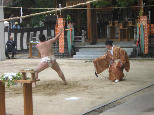概要  一人の人間が、あたかも神と踊っているかのごとく相撲をとる行事。 わざと神に負けることで豊作を祈願する。