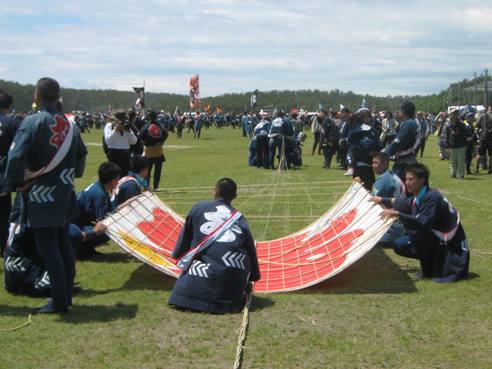 静岡県浜松市では、毎年ゴールデンウィークに浜松まつりがおこなわれている。 その中の一つとして開かれるのが「凧合戦」。市内に150以上もの組があり、それぞれ独自の紋所を持っている。この一年に生まれた子供の名前を入れた凧を揚げるところも。糸が絡むと切り合うが得点などはない。 (2012. 5. 4)